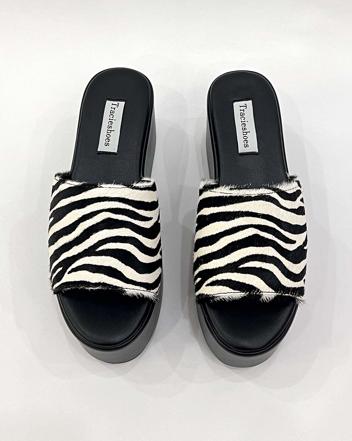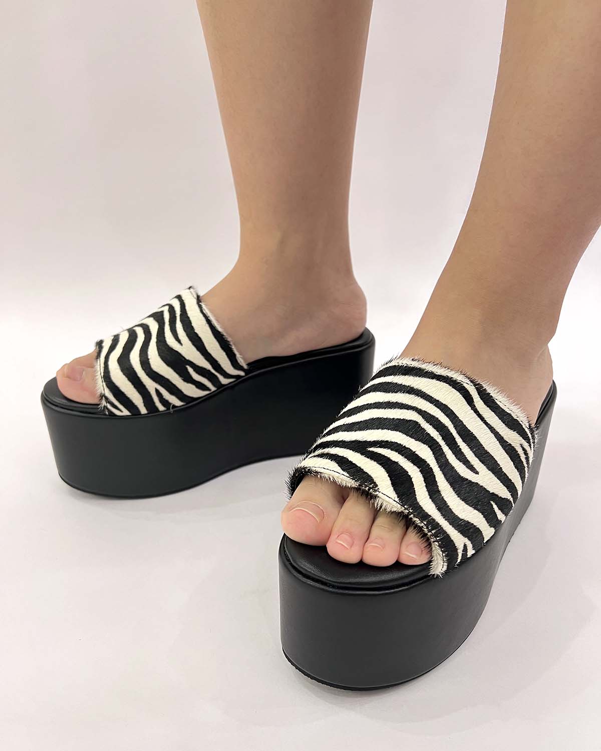 Zebra pony hair leather thick platform sandals for women